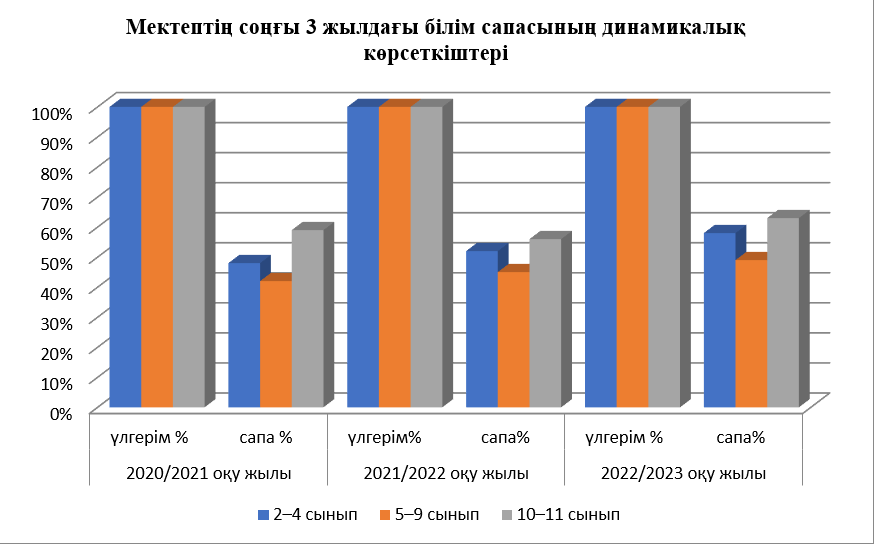 Мектептің соңғы 3 жылдағы білім сапасының динамикалық көрсеткіштері